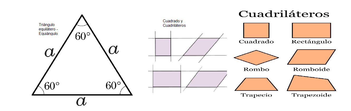 Cuadriláteros: Los lados BC y AD son lados opuestos; al igual que AB y DC. Los Ángulos B y D son ángulos opuestos, al igual que A y C. Clasificación de los cuadriláteros: Trapecio. Tiene dos lados paralelos. Paralelogramo. Cuadrilátero con ambos pares de lados opuestos paralelos. Rectángulo: es un paralelogramo con cuatro ángulos rectos. Rombo. Es un paralelogramo con cuatro lados congruentes. Cuadrado. Es un rectángulo Con cuatro lados congruentes.