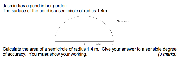 AREA OF A CIRCLE:pi X Radius squared