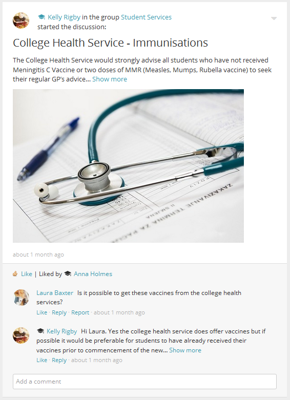 Each Campus group therefore offers its members a dynamic learning environment - not only through the content that's shared with them, but from the input and interactions with other group members - as they have total freedom to post resources, links and media with team members and receive feedback and support from multiple sources.Campus groups also provide an easy way of connecting to staff and students to make announcements or share important information.