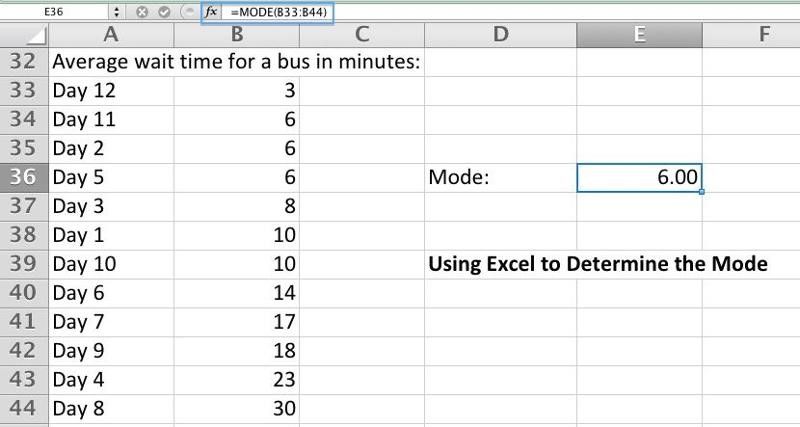 Mode The most common result (the most frequent value) of a test, survey, or experiment.Example: Find the mode of 5 feet 6 inches, 5 feet 7 inches, 5 feet 10 inches, 5 feet 8 inches, 5 feet 8 inches. Put the numbers is order to make it easier to visualize: 5 feet 6 inches, 5 feet 7 inches, 5 feet 8 inches, 5 feet 8 inches, 5 feet 10 inches. The mode is 5 feet 8 inches (it occurs the most, at 2 times).