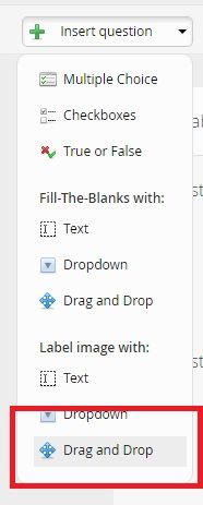 Choose Label an Image Drag and Drop from the Insert Question Drop Down