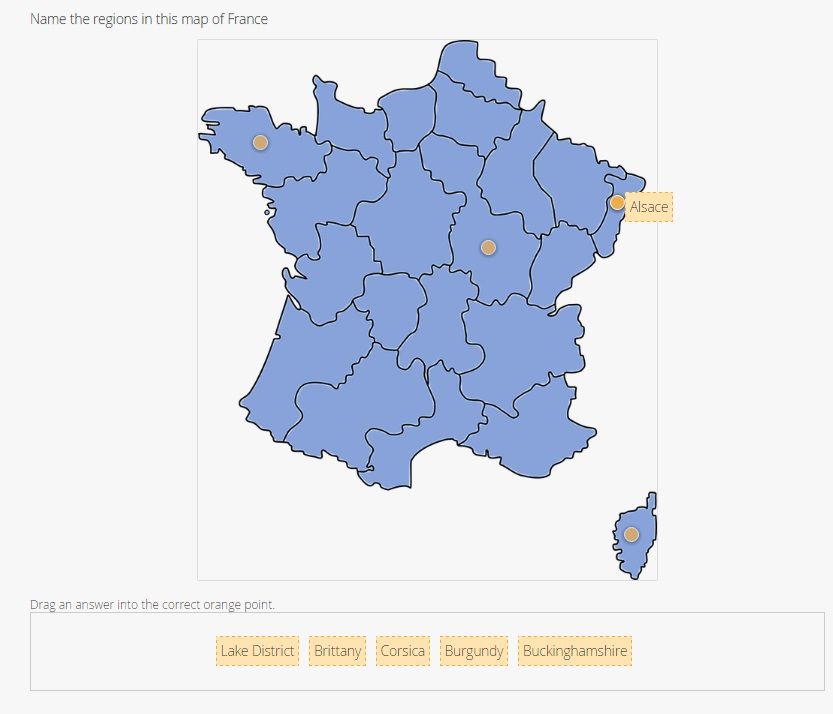 Click anywhere on the image and a yellow circle hotspot will appear. You must add at least one correct answer. Then click Save.