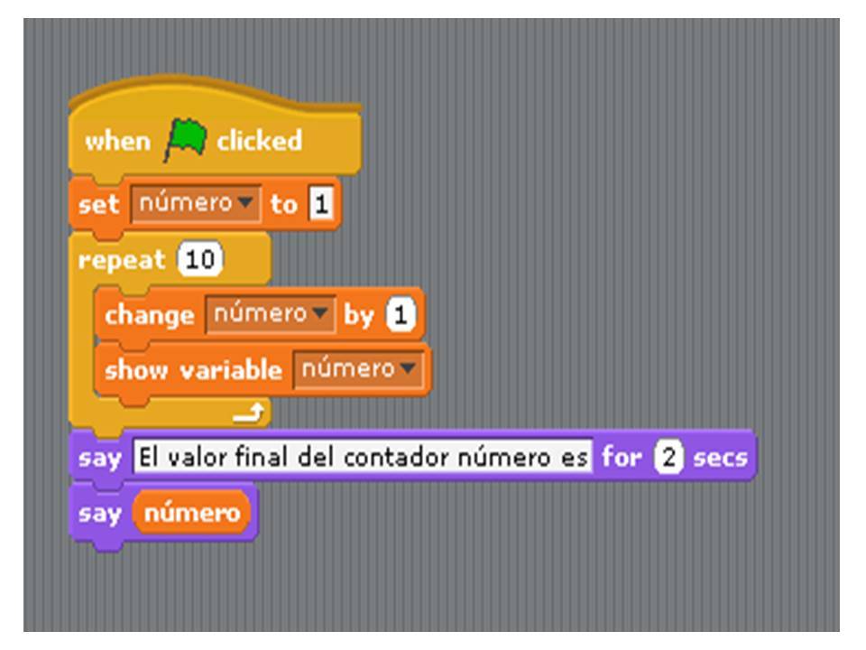 Las constantes se implementan como una estructura de programación (A = A + 1) que consiste en almacenar una variable (A) el valor de ella misma (A) más un valor constante (1). Es muy útil para controlar el número de veces que debe ejecutarse un grupo de instrucciones.En Scratch, se utiliza la instrucción cambiar... por ... para incrementar la variable en una cantidad determinada.