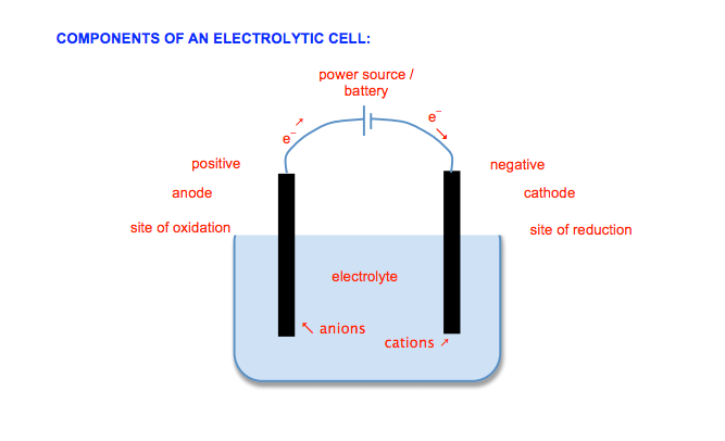 Electrolysis of Motel Salt: When a current runs through a molten salt, it decomposes Calculations of E˚cell is the same as voltaic cell (preferred METHOD 1)