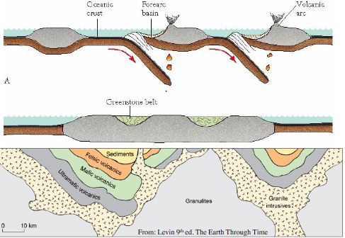 Continental Crust 4.4 Ga Formed at subduction zones Composed of Tonalite, granodiorite, granites Local Formed by partial melting of wet, sediment covered mafic rocks in subduction zones