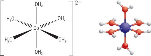 Complex Ions are Metal Ions Surrounded by LigandsA complex is a central metal atom or ion surrounded by co-ordinately bonded ligands. A co-ordinate bond (or dative covalent bond) is a covalent bond in which both electrons in the shared pair come from the same atom. In a complex, they come from the ligands. So, a ligand is an atom, ion or molecule that donates electrons to a central transition metal to form a co-ordinate bond. The co-ordination number is the number of co-ordinate bonds that are formed with the central metal ion. The usual co-ordination numbers are 6 and 4. If the ligands are small, like H20 or NH3, 6 can fit around the central metal ion. But if the ligands are larger, like Cl-, only 4 can fit around the central mental ion. 6 CO-ORDINATE BONDS MEAN AN OCTOHEDRAL SHAPEBond angles are all 90