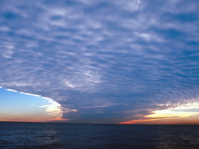 Cirrus Clouds DESCRIPTION: Thin, (wispy), High clouds Made of ice crystals Over 6km up It's FREEZING up there Can mean Bad Weather is on the Way.