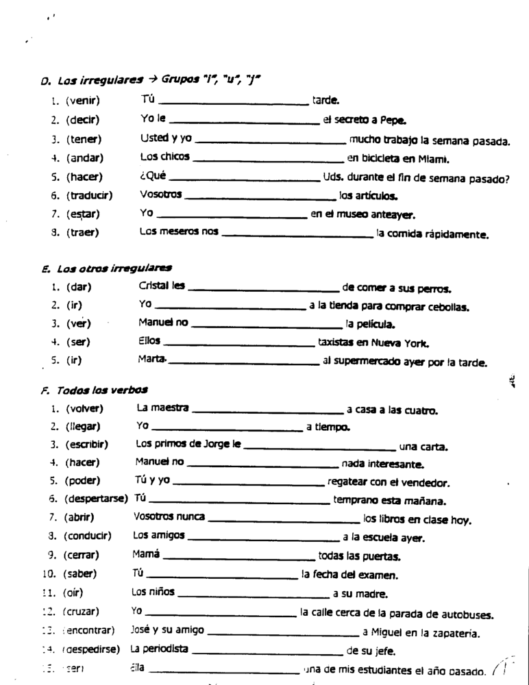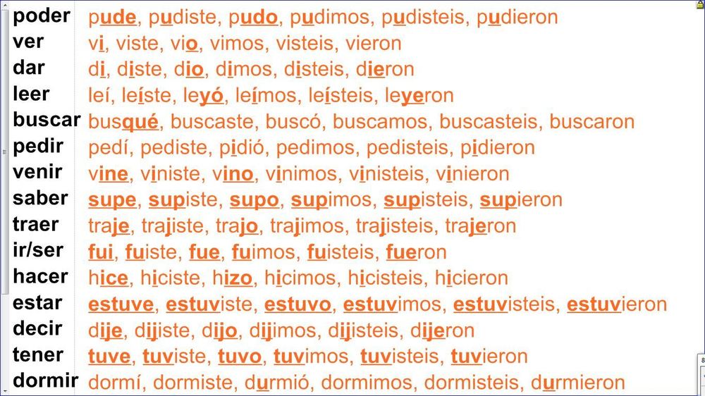 Irregular Preterites There are several verbs that do not follow the regular pattern. Please note tat these DO NOT HAVE ANY ACCENTS.