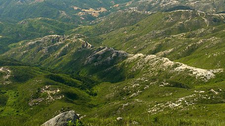 badland has seriously eroded areas long process from surface runoff on bare ground because of granite : many joints -> easily eroded