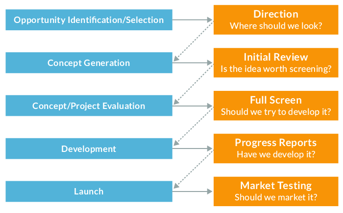 Week 6 Introduction to the new product process There are five phases in the new product process: Phase 1: Opportunity identification/selection. Phase 2: Concept generation. Phase 3: Concept/project evaluation. Phase 4: Development.Phase 5: Launch.
