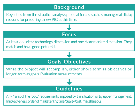 Week 7Stage 1: Opportunity identification and selectionThe Product Innovation Charter (PIC) is the new product team’s strategy for products, not processes. It is for innovation (think of the definition of new product) and is a document specifying the conditions under which a firm will operate. Typically, it is a document prepared by senior management designed to provide guidance to the strategic business units (SBUs) on the role of innovation.Focus:Technology strengths include Apple’s operating system, hardware, applications, and services, product design and development skills. Marketing requirements include products on the 'cutting edge' that offer seamless integration and high performance, yet are intuitive, simple, and fun to use.Goals:Revolutionary new products should also be platforms for future products, due to the cost of 'really new' product development. New products should occupy the leadership position in the market.Special Guidelines:Apple aims to be the best, not necessarily the first, in new product categories.The Result:Apple’s first 'tablet computer', a revolutionary new product seen by many at the time as the 'next big thing.' No one tablet computer had established a dominant position yet, so Apple could be the standard bearer with the iPad. The plan for the future was to add capabilities and applications to future iPads.