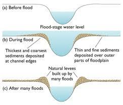 Lower courseMouth: this is where the river meets the Sea and the majority of the rivers load is deposited here as it is very flat land and the river has almost lost all its energylevees: Natural levees form beside a river's banks. They are formed when the river deposits material as it floods. During a flood the river will deposit its heaviest material first (i.e. closest to the banks). Over the years this material builds up to create a levee. The floodplain also gets built up with the fine sediment to create alluvium which makes the floodplain very fertile.Flood plane: this is either side of the river and its the areas susceptible to flooding. Delta: when the river reaches the mouth of the river it drops its load however some of the silt and smaller rocks are carried out a bit further and are deposited. Over thousands of years this has created areas of land. However due to the fat that is practically on sea level and the river is still flowing through the land it means that the delta is very susceptible to flooding