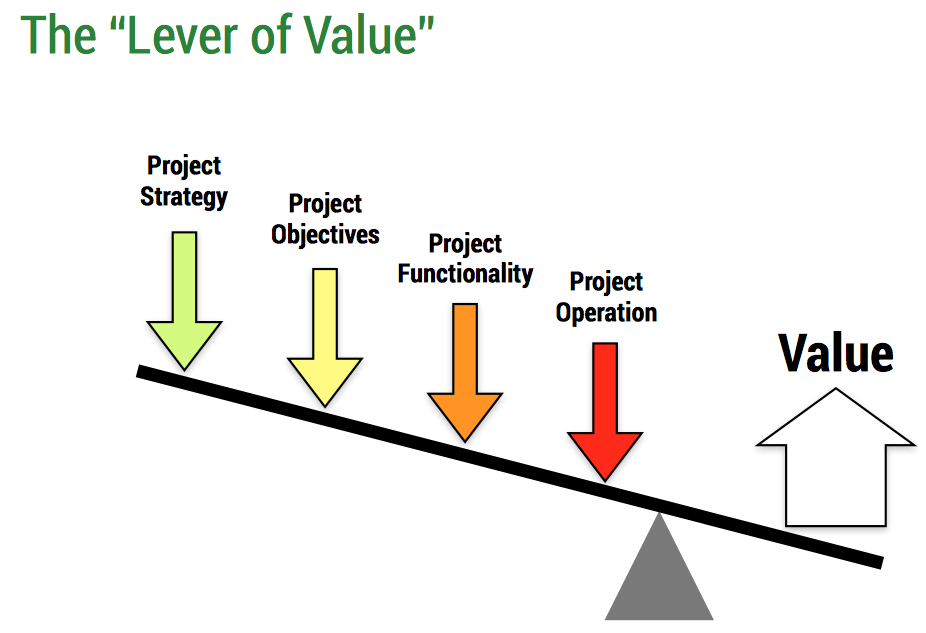 The Value Chain The value chain is influenced by the value systems of the organisations. A value chain is formed when the understanding of value held by those performing sequential activities is aligned, with each each activity adding more value to it. By aligning the understanding of value, gaps in workflow and rework are avoided which make the chain efficient. An aligned project value chain must mirror the changing nature of work performed as the project progresses. If this is not achieved, the perceptions of value associated with the different construction stages will become disconnected. A building design that was perceived to offer value at one stage may not be perceived to offer value at the next which could result in rework/delays and potentially dissatisfied stakeholders or supply chain members . The understanding of value at a strategic levels developed in early VM workshops must be translated into the tactical project and subsequently, into those operating the building. At strategic level of an organisation, the construction project must reflect corporate values, which will be implied by the business's mission statement. The corporate value must be aligned with the business value by clarifying how the the project will interact with other parts of the procuring client's business. The project value chain is then assembled to map business value into the various views of value held at each stage of the tactical construction project. Achieving operational value (i.e. project fulfils its required role) requires all stakeholders' expectations of value to be translated through the project value chain to this final outcome. Dual VM Workshop RolesPeriodic VM workshops must maintain an evolving understanding of value through the value chain by performing two roles: They must provide a forum so that stakeholders can update their common understanding of value in response to evolving project work and any changes in project context. They must convey the updated understanding of value to the guide those performing subsequent value chain activities. The Need for the Workshop Forum Workshops establish the social setting required for stakeholders to communicate to socially construct common understanding. Sufficient understanding of value cannot be gained by other communication methods other than direct, face to face communication. Workshops provide a forum for stakeholders to use analytical tools under the guidance of a facilitator to develop a socially constructed understanding of value. Workshop tools are designed to stimulate this debate to reveal the consequences of stakeholders' underlying values. Workshops are pivotal for making compromises and reaching a satisficing solution. Workshops establish equality of stakeholder views by the facilitator ensuring all are equally engaged and contribute to the developing understanding. Workshops establish a socially 'safe' space to explore idea & contribute thoughts without the fear of a view being judged or considered wrong. Achieving this situation as a facilitator is essentially for the social construction of understanding. Value Management Study Styles Study Style 1 - Value System Audit (independent value manager) Study Style 2 - Value System Reconfiguration (independent value manager) Study Style 3 - Value System Audit (independent value management team of specialists) Study Style 4 - Value System Audit and Reconfiguration (independent value management team of specialists) Study Style 1 - Value System Audit Used to understand the nature of value to the client body. Undertaken by an independent value manager Helps project stakeholders understand the problem. Does not emphasise solving the problem. Stakeholders' motivation moves project onwards. Construction project confirmation and formation. Study Style 2 - Value System Reconfiguration Used to verify and challenge the project value system. Undertaken by an independent value manager Facilitator helps stakeholders in challenging assumptions about value systems and likely solutions. Project briefing leads to concept design verification. Stage 3 - Value System Audit Used to confirm value system compliance. Undertaken by an independent value management team of specialists. A rare format in the UK. Validates technical system design. Step 4 - Value System Audit and Reconfiguration Used to audit and redirect technical system compliance. Undertaken by an independent value management team of specialists. External team of specialists address technical issues. Applied value engineering would us an internal team. Used to respond to problems in technical system design. Value Creation Opportunities for value creation decrease as a project progresses from design brief stage through construction to occupancy. Cost of design changes increases as projects progress. Design and build contracts limit the ability to reflect client values throughout the design.