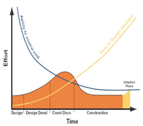 System Sequencing & Project Crossover Technical systems are usually designed in a set order. Independent systems (that don't rely on another) can be resequenced. If independent, a technical system the client particularly cares about can be designed earlier. Independent systems also reach a crossover point beyond which the cost of improving the design of that system exceeds the benefits of doing so. If designed before the crossover of the whole building, they can influence subsequent systems. If the system is independent, value can continue to be added for that system even after the crossover point for the whole building. The principle supports the ongoing application of value management in the later stages of a construction project by reducing the scope of the problem from the whole project to systems within the project and the stakeholders affected by the system. In these later stages, value management turns into value engineering as the nature of the problems become more technical. The Problem of Design Fixity Design fixity usually relates to the whole building but can exist within technical systems. As a project progresses, the scope to make decisions and impact the value decrease. At a certain point in the project, the benefit of responding to a new insight that relates to the whole project, no longer exceeds the cost of doing so and as such cannot be implemented. When considered within the scope of a single system, the design fixity crossover for that system can happen after the crossover for whole building. Value can still be considered within the design of a building system even after it's not sensible to do so for the whole building.