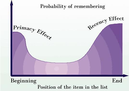 What do we mean by Memory Retrieval and how do the Serial Position Effect, Primacy and Recency tend to impact retrieval?Memory Retrieval is process of accessing stored memories. Serial Position effect is the tendency to recall the items at the beginning and of a list more than the middle. The tendency to recall the beginning is Primacy. The tendency to recall the end is Recency. This impacts memory retrieval by not being able to retain of what is in the middle of our list.