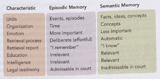 In Explicit Memory system, what is the difference between "Episodic," and "Semantic Memory"? Episodic - the information of our lives. When, where, what happened in our lives Semantic - the information about the world. One's expertise. Reading, writing, etc