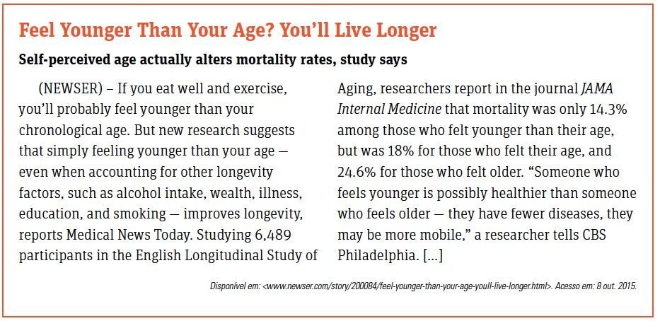 Estudos sobre longevidade têm sido cada vez mais frequentes. De acordo com o texto, uma nova pesquisa sugere que é possível viver mais quando o indivíduo se sente