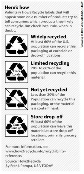 C. apresenta novos rótulos que indicam se produtos podem ser reciclados.