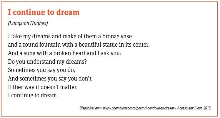 Langston Hughes foi um autor americano moderno que abordou em seus textos questões como a justiça social, econômica e política. No poema “I continue to dream”, o autor