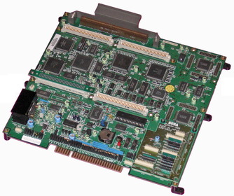 | what is this? | this is a motherboard. a motherboard is a printed circuit board containing the principal components of a computer or other device, with connectors for other circuit boards to be slotted into. |