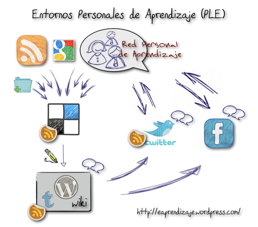 | Entornos Personales de Aprendizaje (PLE) | "...los PLE suponen una colección autodefinida de recursos, servicios, herramientas y dispositivos que sirven para que profesorado y estudiantes puedan conformar sus redes personales para el aprendizaje y el conocimiento" |