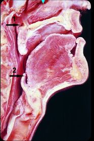 | 1) identify 1 and 2 | 1) opening of Eustachian tube 2) epiglottis |