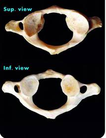 | 1) identify the bone 2) share in which joint , what's its type ? | 1) atlas bone 2) atlanto-occipital, elipsoid synovial joint. |