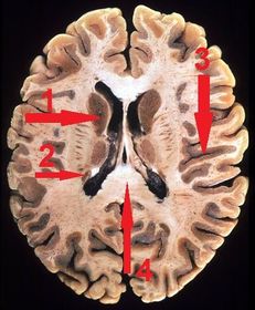 | 1) identify 1,2,3,4 | 1) head of caudate 2) tail of caudate 3) insula 4) splenium of corpus callosum |