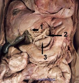 | 1) identify 1,2,3 | 1) right hepatic artery 2) splenic artery 3) pancreas |