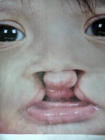 | identify the case and it's cause | - bilateral cleft lip - failure in fusion between maxillary prominence and intermaxillary segment bilaterally |