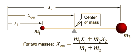 | how do you find an objects center of mass? | The concept of the center of mass is that of an average of the masses factored by their distances from a reference point. In one plane, that is like the balancing of a seesaw about a pivot point with respect to the torques produced. |