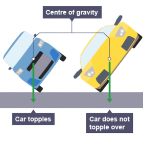 | how does an objects center of mass effect it when tilting? | Objects with a wide base, and a low center of mass, are more stable than those with a narrow based and a high center of mass. |