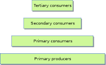 | pyramid of numbers | shows number of organisms at each trophic level |