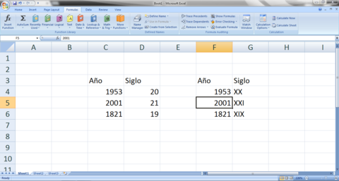 | Roman: Esta fórmula funciona para cambiar los números a números romanos | |