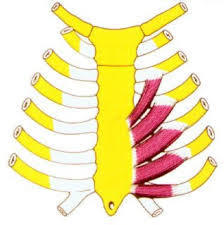 | Músculos supracostales - Origen: apófisis transversa -Inserción: cara costal externa Elevan costillas | |