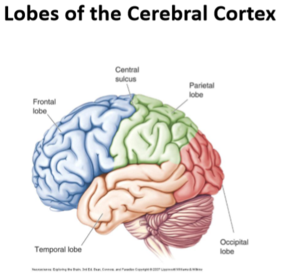 | Cerebrum –______________ cortex - two ________________ _______________divided by the ________ _____________ (midline) - concerned with ________________ sensation and movement | cerebral cerebral hemispheres sagittal fissure contralateral |