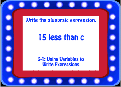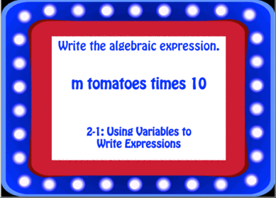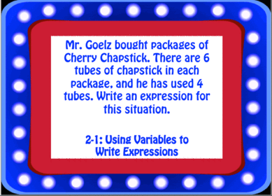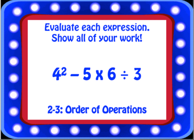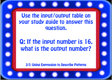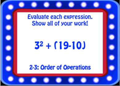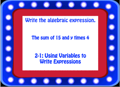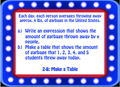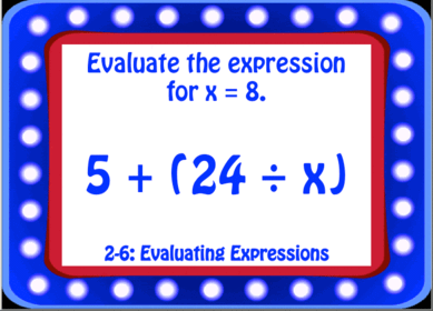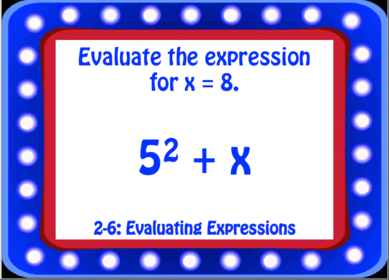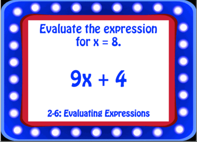 | Example Card: Solve the problem. 2+2 = | Answer: 4 1,000 points |