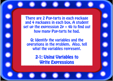 | Answer: Variables = p, b Operations = multiplication & addition p = packages b = boxes 250 points | |