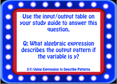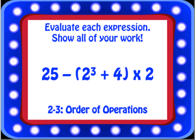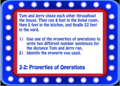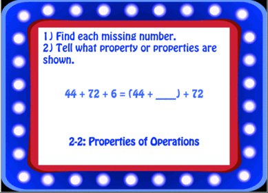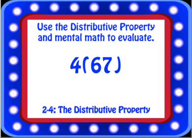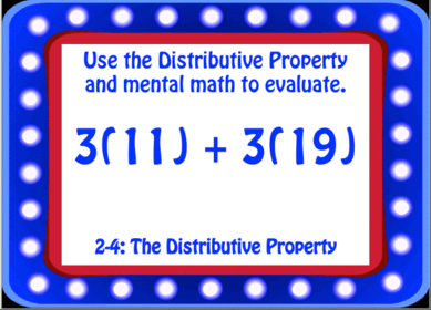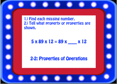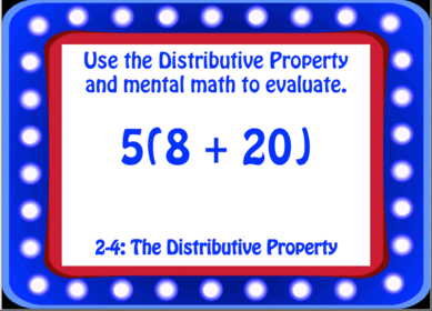 | Answer: 5 Commutative Property You take 25 of your partner's points! | |
