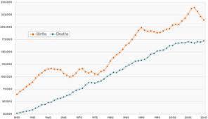 | Natural Increase | Births-Deaths Area shaded between death and birth rates |