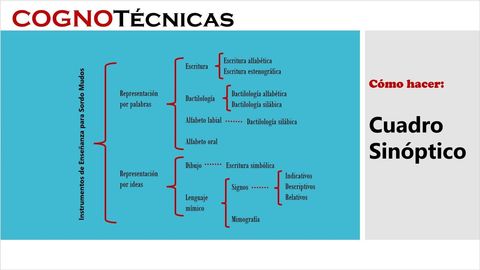 | ¿Qué es un cuadro sinóptico? | Un Cuadro sinóptico es un esquema que muestra la estructura global del tema, teoría o ideas |