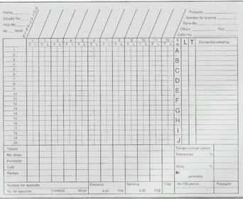 | TABLA PARA ESTUDIOS DE TIEMPOS. Esta tabla de tamaño conveniente donde se coloca la hoja de observaciones para que pueda sostenerla con comodidad el analista, en cuyo angulo superior derecho se asegura un reloj para tomar tiempos. | |