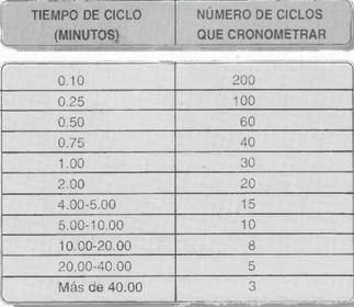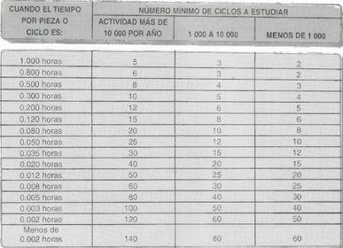 | CRITERIOS DE LA GENERAL ELECTRIC. Establece el numero de ciclos a cronometrar utilizando el tiempo del ciclo en minutos. CONEJO JUAREZ. |