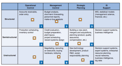 | What is the Decision Matrix? | The three primary classes of problem structure and the three broad categories of the nature of decisions can be combined in a decision-support matrix. |