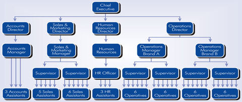 | Tall hierarchical; many levels, narrow levels of responsibility, long lines of communication (i.e Tesco) | |