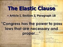 | Necessary & Proper clause a.k.a Elastic clause | CLause on Article 1, section 8 of the constitution that gives congress the right to make all laws"necessary and proper" to carry out it's expressed powers. |