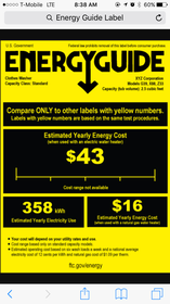 | Energy Guide Label | Yellow sticker, required by law, which allows a consumer to compare the yearly cost to operate an appliance. KM |