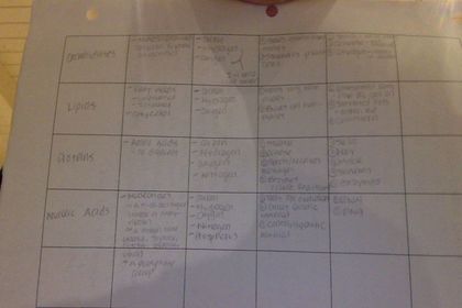 | What are the 4 organic macromolecules? What are they made of (monomers) and elements? What are their functions? Be able to identify examples of each. | |