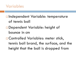 | What is the dependent variable of a bouncing a ball? | The dependent variable is the bounce height. |