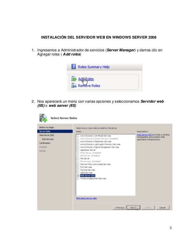 se refiere a la instalacion de un servicion web o http en windows server 2008